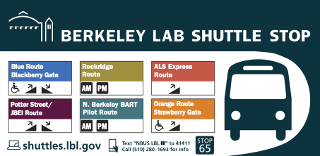 - Shuttle Stops are marked with a Berkeley Lab Shuttle sign.