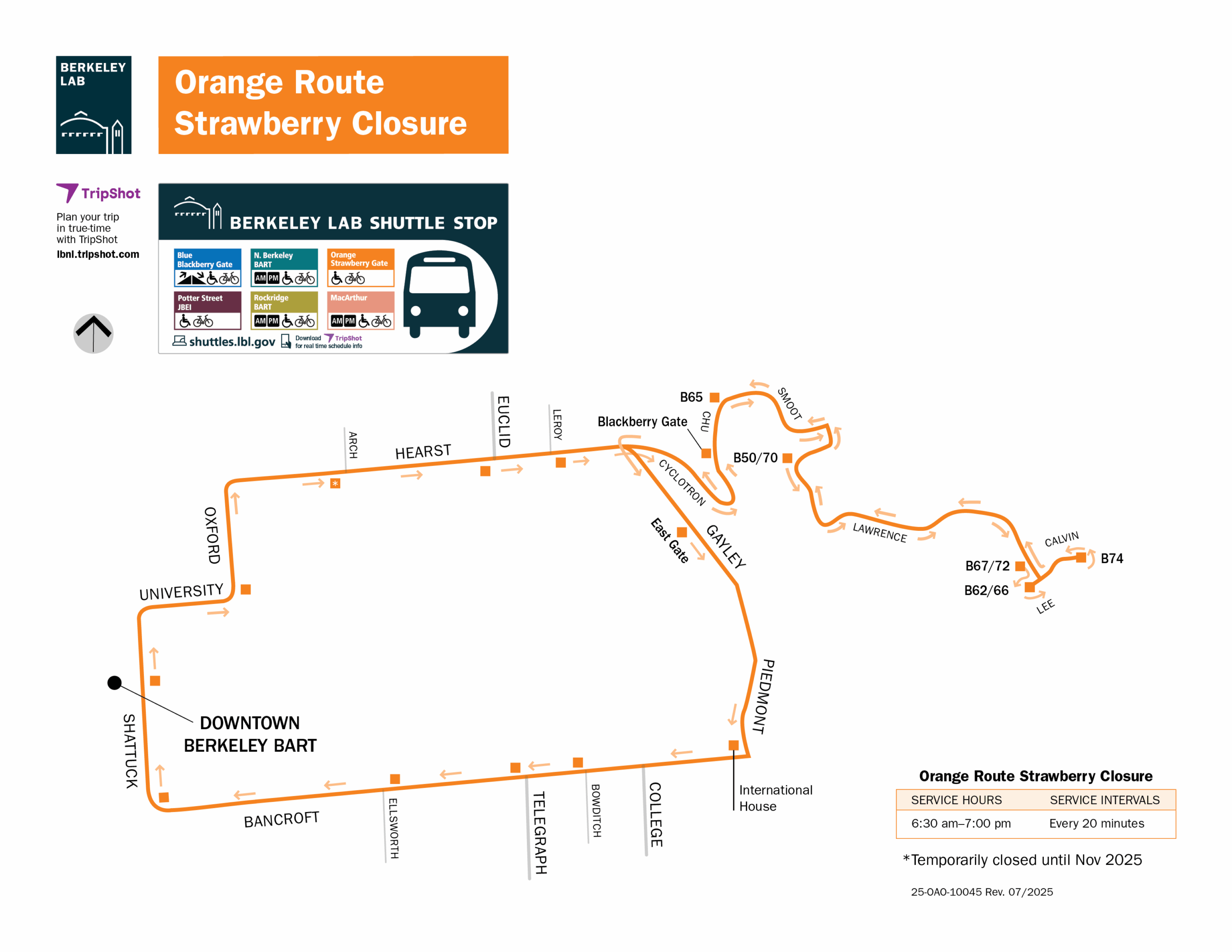 For real time schedules go to lbnl.tripshot.com, select the route on the left, then click “timetable” at the top.